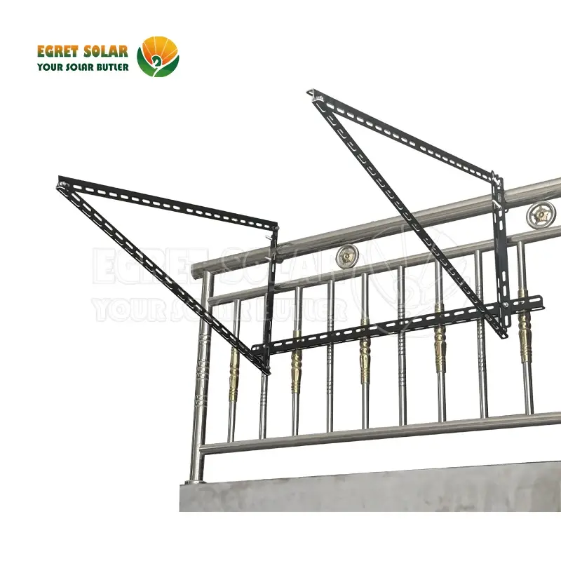 Se la tua casa ha un tetto piatto o un tetto verticale, è possibile installare l'inclinazione del triangolo regolabile pieghevole. Se vuoi installarlo su una ringhiera di balcone, puoi usare ganci. Se è un tetto di legno, puoi usare viti auto-toccanti per fissare il raggio inferiore. I tetti in cemento possono essere installati posizionando pesi o utilizzando bulloni di espansione.