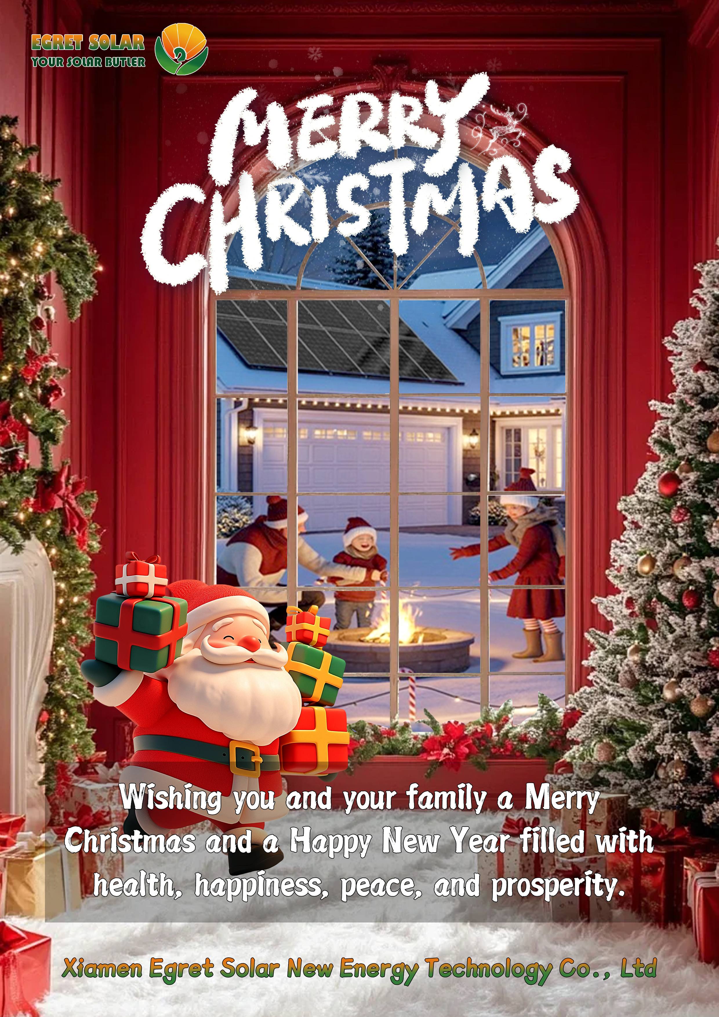 Buon Natale! In questo gioioso periodo dell'anno, tutti noi di Egret Solar esprimiamo la nostra sincera gratitudine per la vostra fiducia e collaborazione. Il vostro supporto è la forza trainante della nostra missione di fornire soluzioni energetiche verdi.