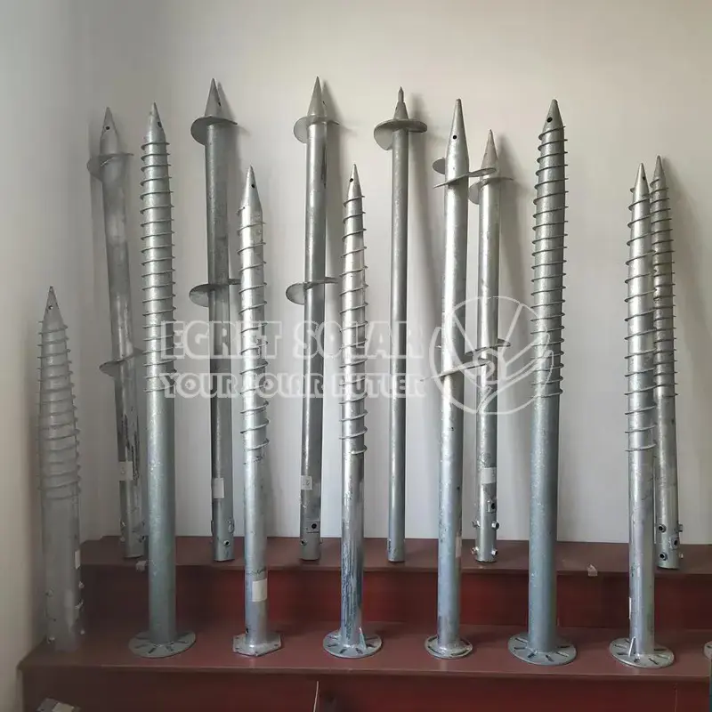 Con tali viti di terra a quattro lame, le installazioni possono essere realizzate nel deserto e nel terreno di sabbia. Le quattro grandi lame sulla vite a terra rendono l'area di contatto tra la pila di terra e il terreno più grande, consentendo alla vite di terra di essere fissata più saldamente sul terreno di sabbia dolce.